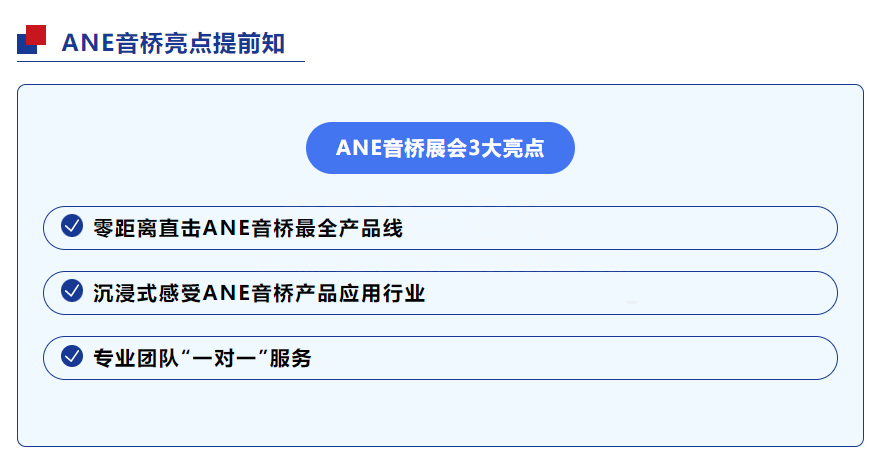 接下来,ANE音桥在这为大家提前预告本次展会之旅,将会有哪些看点。