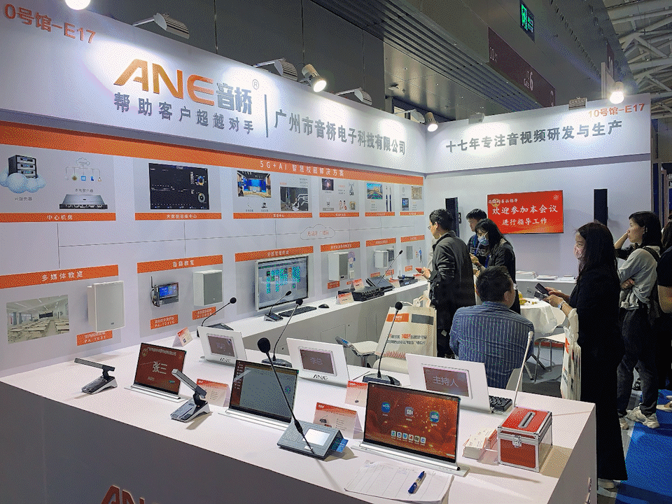 我们ANE音桥在此次展会中,同样以最好的状态为大家带来了智慧云广播4.0跟会议(无纸化)系统。