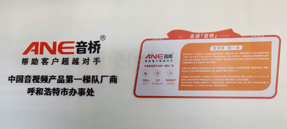 18年深耕音视频行业,音桥凭借持续的技术研发和优质的产品服务,荣获“十佳音视频集成设备供应商”、“公共广播十大品牌”、“十佳创新企业品牌”等荣誉称号。呼和浩特办事处的乔迁,是我们扩大提供优质产品及服务范围的重要一步,我们将持续为各行业领域赋能,为用户提供从需求分析到方案设计,再到实施部署的一站式、定制化音视频整体解决方案,以满足不同客户的具体需求。