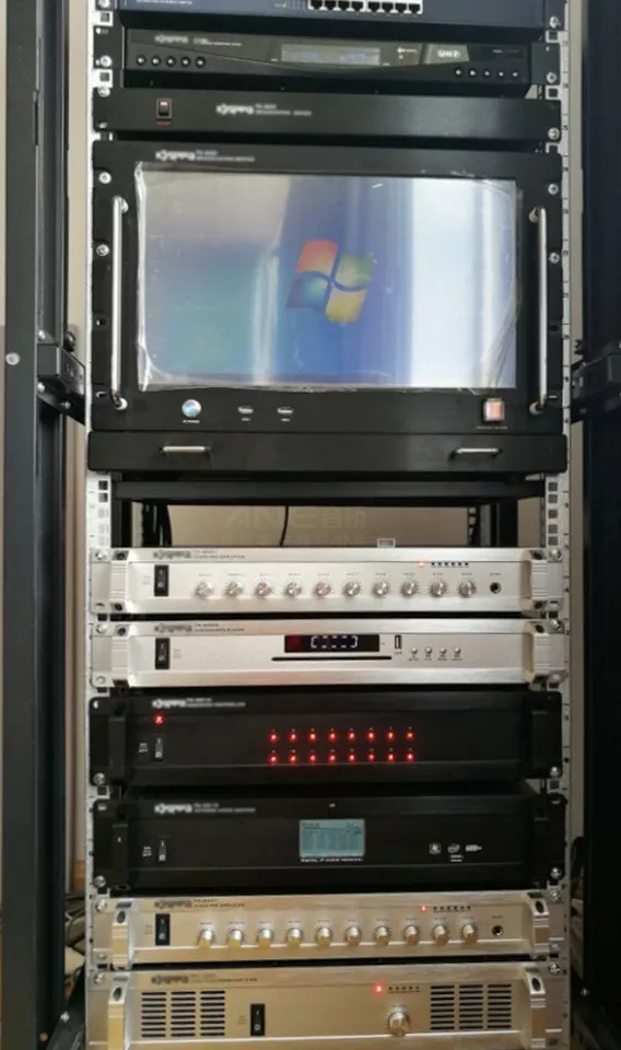 项目使用-音桥校园IP网络广播系统,主控设在广播中心控制室,为管理控制中心,完成对广播系统各路音源,电源管理器,报警方式,分区,终端的配置。而在学校各个教室、室外运动场、篮球场等利用学校网络,把各个区域广播音频终端、网络寻呼站和分控软件操作系统连接起来,组成一套数字化网络广播系统,进行统一管理。