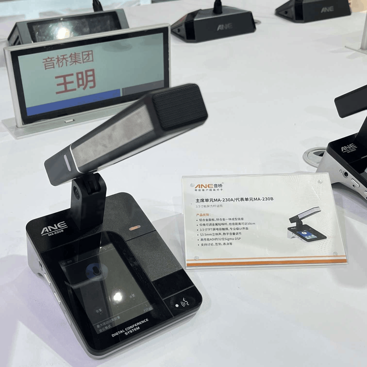 本次展会上,ANE音桥为现场用户带来了全新会议无纸化、公共广播、专业扩声、舞台灯光四大核心系统产品,吸引了众多现场观众驻足,并纷纷入内与现场人员进行深入交流,表达了浓厚的兴趣。