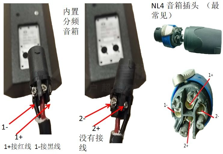Neutrik插头常用的为四芯的,也二芯、八芯音箱插头,他们外观基本相同,只有尺寸大小的差异。通常情况下音箱的接口为四芯插头,如是八芯插头音箱后部会有标注;功放的输出端口为四芯插头, NL4插头的4个接点是为了音箱外分频用的,也就是音箱内部没有分配器,用外部的电子分配器分出高低音,然后在进入各自的功放,高音功放输出的信号接1+1- 音箱内部接高音喇叭,低音功放输出的信号接2+2- 音箱内部接低音喇叭。如果音箱是内置分配器,那么NL4插座在音箱内部1+和2+是连接在一起的,1-和2-是连接在一起的,这样功放输出的信号只需接1+1-或2+2-就可以了。